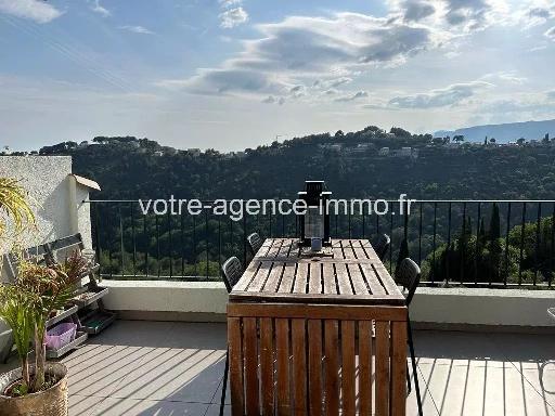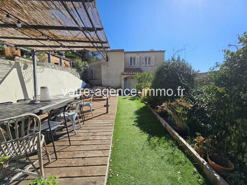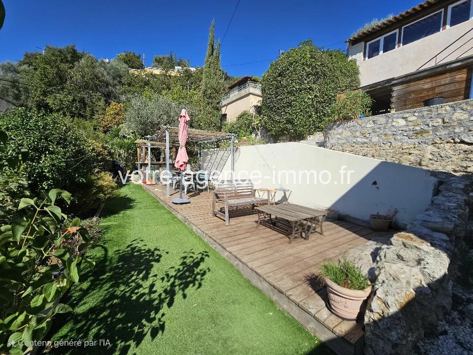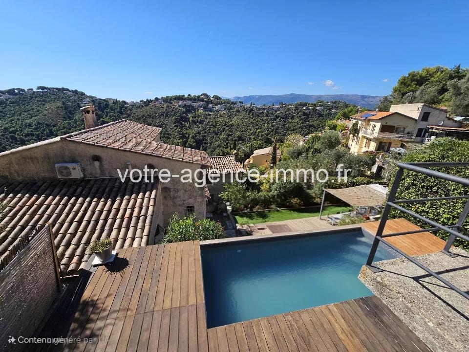 Entre Aspremont et Saint-Pancrace, sur la commune d Aspremont, Vous allez tomber sous le charme de cette tres belle maison (discretement jumelée sur pignon nord) 4 pièces environ 100 m2 hab sur 2 niveaux (mitoyenne sur 1 face) nichée dans un écrin de verdure, Exposée sud-ouest, et jouissant d'une vue panoramique collines et mer au calme absolu En RDJ: tres belle piece de vie avec cuisine semi ouverte, suite parentale et wc invité A l'étage: 2 chambres, sdb, wc. Une parcelle de 820m2 en trois planches, beau jardin paysagé avec piscine hors sol Grand abris voiture 1 voiture + 1 parking. Tres grande cave accessible de la cuisine et du jardin Rénovation totale 2017 Copropriété en cours de constitution: 2 copropriétaires Ramassage scolaire (college de tourrettes levens et lycee estienne d orves) et bus 76 vous amenant à place fontaine du temple en 12 mn env
