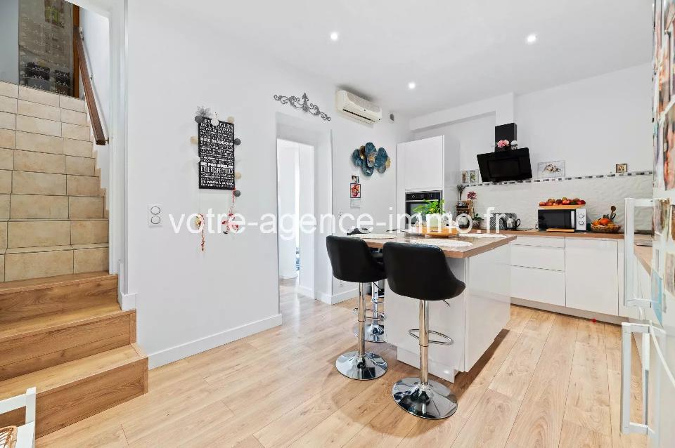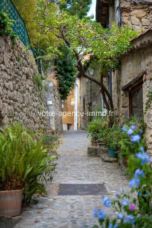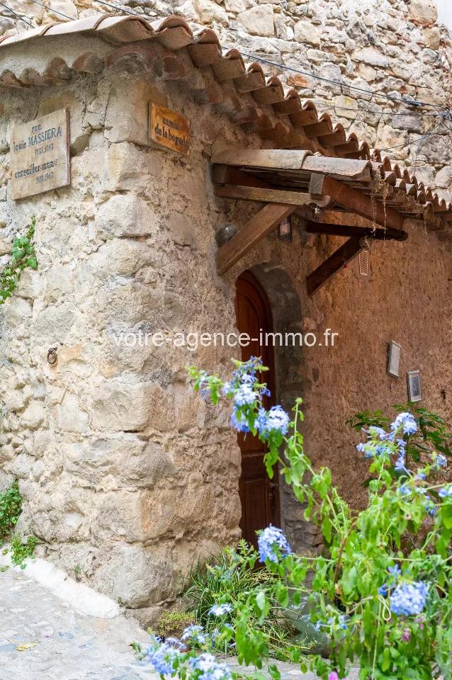 Coaraze Maison de Village avec Caves en pierres de taille, A saisir au coeur du renommé village du soleil, classé des 100 plus beaux de France. Maison de pierres de taille édifiée sur deux niveaux d'une superficie habitable de 65 m2 en parfait état, deux chambres en enfilade donnant sur un balcon avec vue sur montagnes, un généreux séjour avec parquet au sol. Intérieur moderne, cuisine entièrement équipée avec ilot central, clim réversible, fenêtres PVC double vitrage, volets aluminum. Etat irréprochable. Isolation par l'extérieur et combles isolées évitant toute déperdition et minimisant le budget de consommation électrique. Vous bénéficierez sous voutes authentiques de trois caves réunies d'une superficie de 30m2 environ, d'une cuisine secondaire, températures idéale à la conservation du bon vin... Il sera également possible d'acquérir en sus : Un terrain agricole de 670m2 comprenant un bassin d'arrosage, une dalle, différents enclos et poulaillers au milieu d'un environnement verdoyant au prix de 44500€ HAI se situent à 2 minutes à pied du logement principal. Les informations sur les risques auxquels ce bien est exposé sont disponibles sur le site Géorisques: georisques.gouv.fr