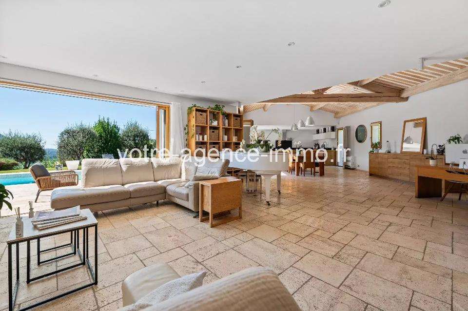 EXCLUSIVITÉ – LEVENS Élégante villa provençale contemporaine de 243 m² env avec piscine chauffée, jacuzzi et vues panoramiques À seulement 30 minutes de Nice, au cœur d’un environnement préservé et recherché de la commune de Levens, cette villa récente (2014) développe 243 m² habitables env au sein d’une parcelle paysagée de 2 000 m² env, offrant un calme absolu, sans aucun vis-à-vis. Cette propriété de standing séduit immédiatement par la qualité de ses volumes, la fluidité de sa circulation intérieure et une organisation idéale pour une grande famille ou une vie intergénérationnelle, grâce à trois espaces nuit parfaitement indépendants, garantissant intimité et confort à chacun. La pièce de réception, d’environ 100 m², constitue le cœur de la maison : un espace majestueux, baigné de lumière naturelle, prolongé par de larges ouvertures sur une vaste terrasse offrant une vue panoramique sur la campagne environnante, avec un léger aperçu mer. L’atmosphère y est à la fois chaleureuse, élégante et résolument tournée vers l’extérieur. La villa propose cinq chambres, dont une suite parentale, ainsi que deux salles d’eau et une salle de bain avec WC, réparties de manière harmonieuse au sein des différents espaces nuit, assurant une parfaite indépendance et un calme absolu en toute circonstance. Les prestations sont à la hauteur du lieu : chauffage au sol, climatisation, double vitrage, matériaux de qualité et finitions soignées, offrant un confort de vie optimal en toutes saisons. À l’extérieur, les espaces ont été pensés comme une véritable invitation à la détente et à la convivialité : piscine chauffée, jacuzzi, terrasses généreuses et zones de réception intimistes, le tout dans un cadre naturel préservé, à l’abri de tout regard. La propriété dispose également d’une borne de recharge pour véhicule électrique et d’un stationnement aisé pour 4 à 8 véhicules au sein de la parcelle. Un bien rare, conjuguant espace, lumière, sérénité et prestations haut de gamme, à quelques minutes des commodités de Levens et à proximité immédiate de Nice.