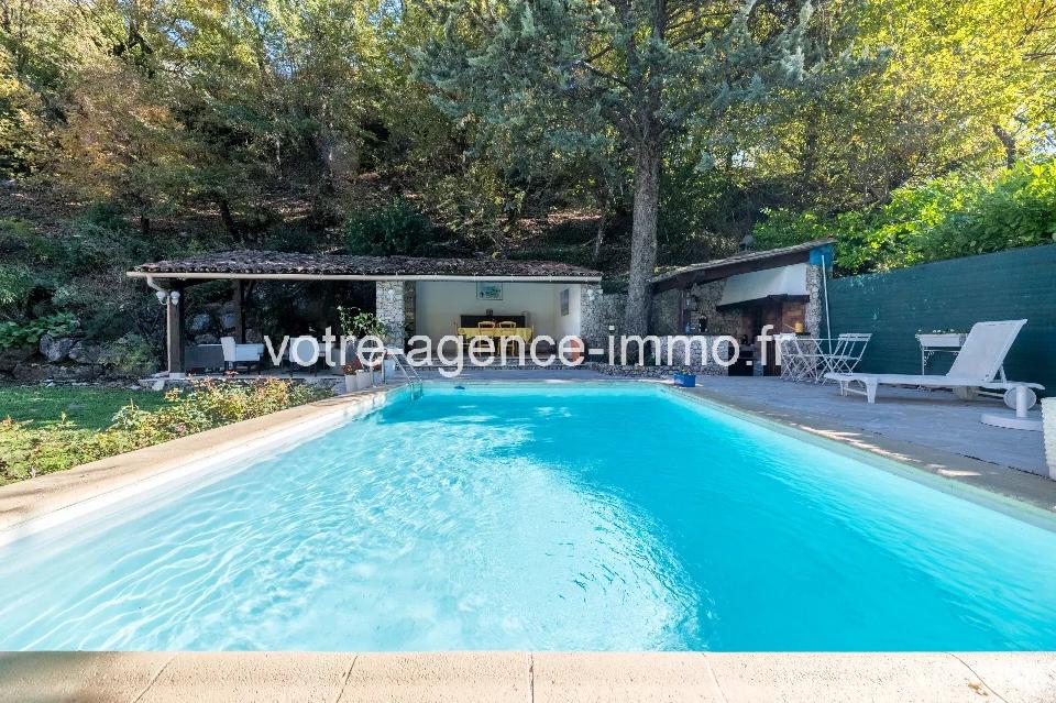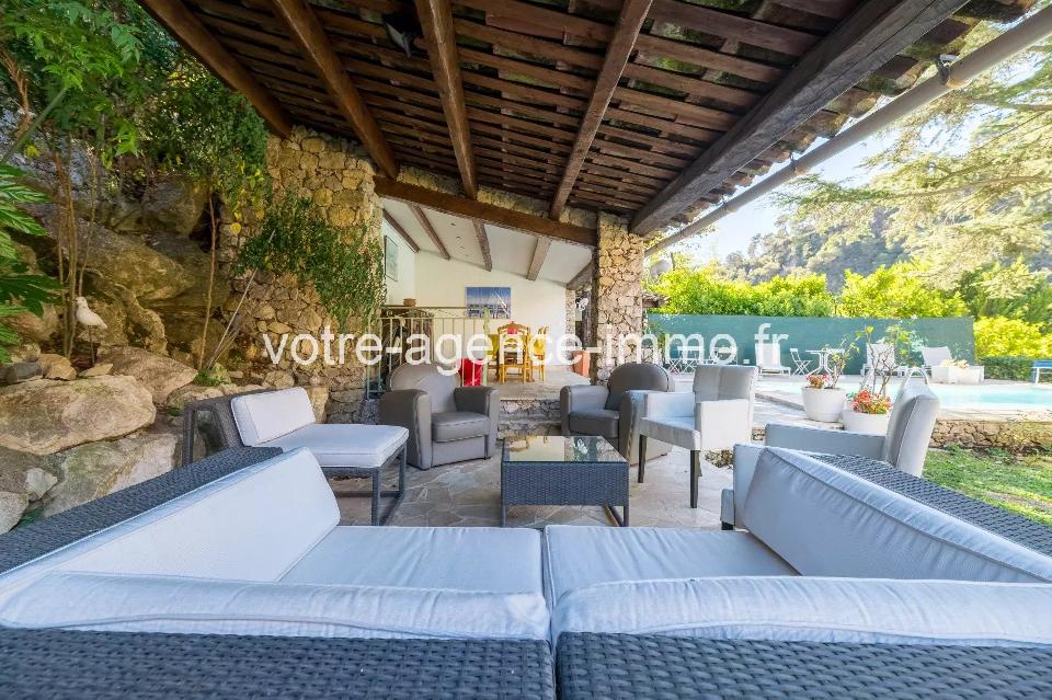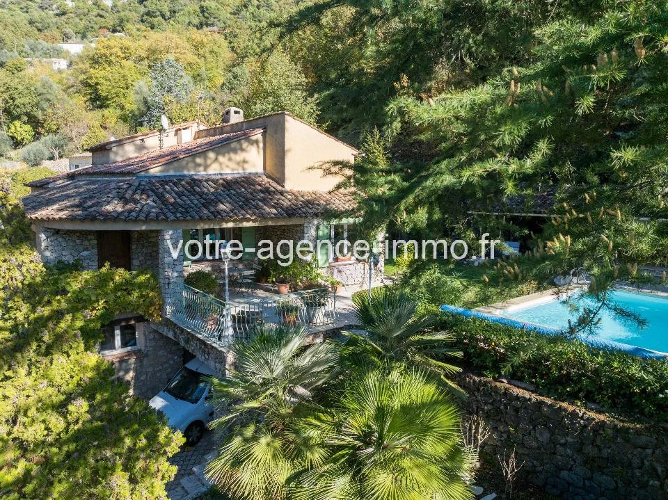 Maison Provençale Tourrette-Levens Maison de charme avec dépendance, piscine et vue nature. Nichée dans un écrin de verdure, cette magnifique villa de 276 m² (227m² habitable) dont un 2 pièces indépendant de 47 m², séduit par son cadre verdoyant, sa luminosité naturelle et ses volumes généreux. Un lieu idéal pour les amoureux du calme et de la nature, à seulement 20 minutes de Nice Est. À l’intérieur, un salon/séjour de 40 m² avec cheminée, ouvert sur une vaste terrasse donnant sur le jardin avec sa piscine, pool house, cuisine d'été. Une cuisine indépendante entièrement équipée, deux chambres (dont une avec accès direct au jardin), une salle de bains et une buanderie. Les amateurs de bien-être apprécieront également le sauna et l’atelier aménagé. À l’étage, la suite parentale séduit par son espace généreux et son atmosphère intimiste : salle d’eau privative, toilette séparée, coin lecture, cheminée et terrasse avec vue dégagée sur la nature. De plain-pied, un appartement indépendant de 47 m² (pouvant accueillir jusqu’à 4 personnes) offre une chambre, un salon, une cuisine américaine équipée, une salle d’eau et sa terrasse privée, parfait pour recevoir vos invités ou rentabiliser en location saisonnière. Le tout repose sur un terrain clos de 2 243 m² avec portail électrique, garage de 30 m², abri voiture et plusieurs places de stationnement. Côté transport, la maison est desservie par les lignes de bus. À DÉCOUVRIR SANS TARDER ! les informations sur les risques auxquels ce bien est exposé sont disponibles sur georisques.gouv.fr