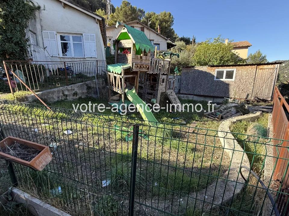 Nice La Trinite, maison individuelle, type 4 pieces, 107m², dominante, avec 550m² de jardin environ, stationnements, lumineuse. Prévoir travaux. Composé d'une grande pièces de vie avec cheminée, cuisine attenante, deux chambres, une salle de bains et douche, et possibilité chambre sous combles. Située dans un petit lotissement. Diagnostics en cours.